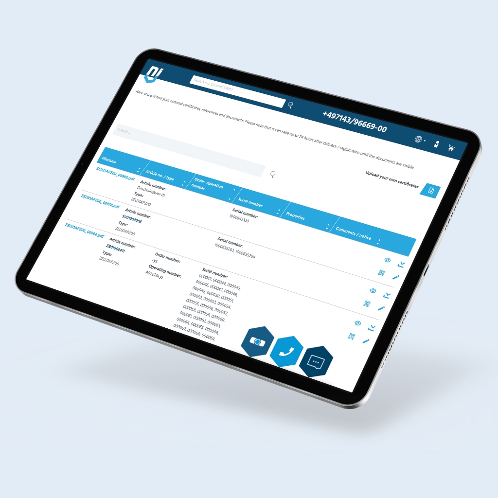 NieRuf facilitates access to your ordered certificates with a user-friendly platform and an intuitive download management system. Using the order or serial number, you can download your documents quickly and easily. You can also upload and manage your own documents, whether created by other suppliers or yourself.