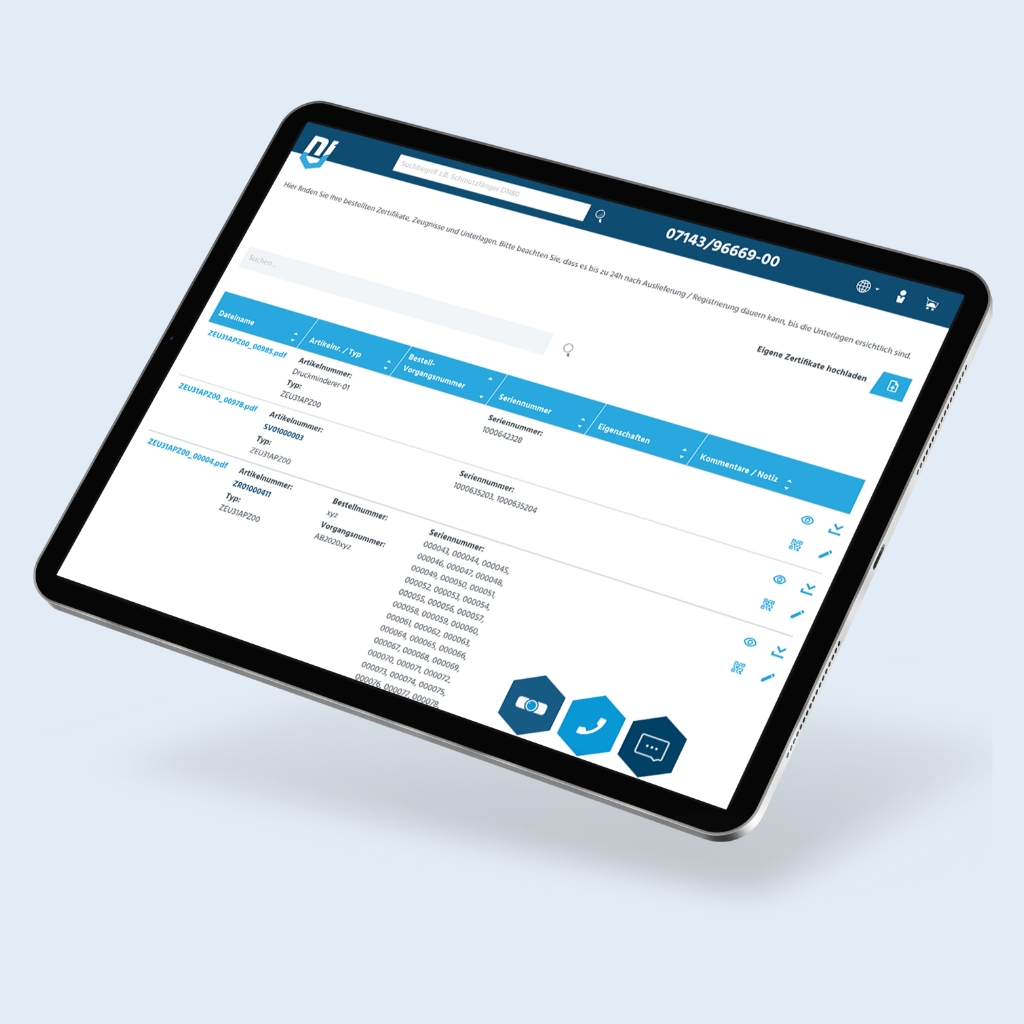 NieRuf erleichtert den Zugang zu Ihren bestellten Zertifikaten mit einer benutzerfreundlichen Plattform und einem intuitiven Download-Management-System. Mit Hilfe der Bestell- oder Seriennummer können Sie Ihre Dokumente schnell und einfach herunterladen. Außerdem können Sie Ihre eigenen Dokumente, unabhängig davon ob von anderen Lieferanten oder selbst erstellt, hochladen und verwalten.